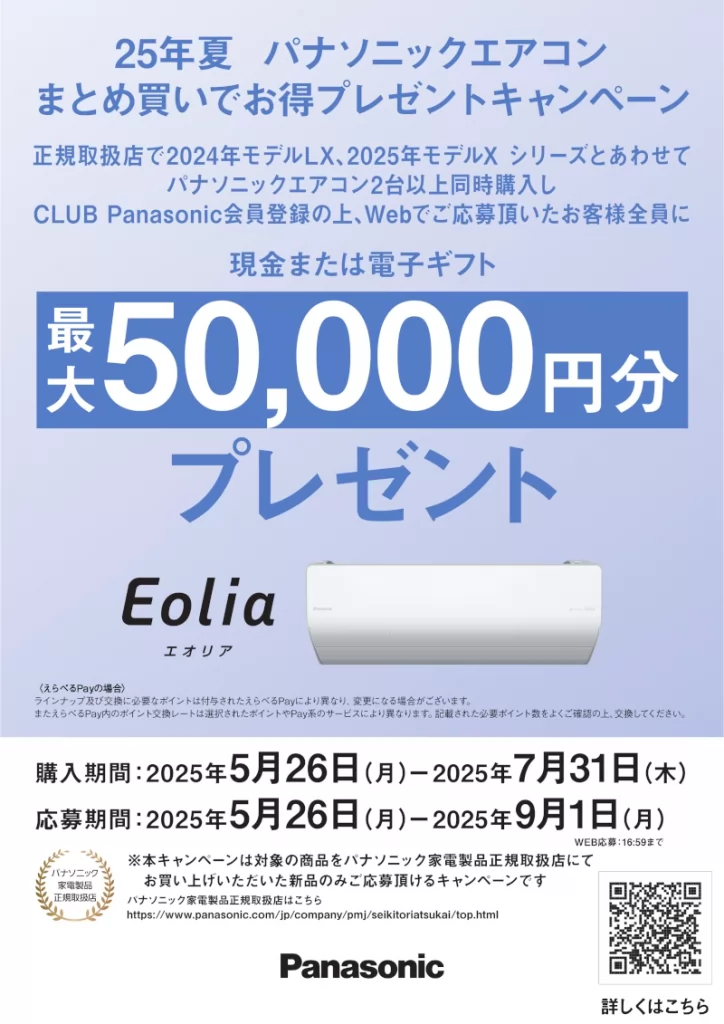 パナソニック エアコンキャンペーンのお知らせ