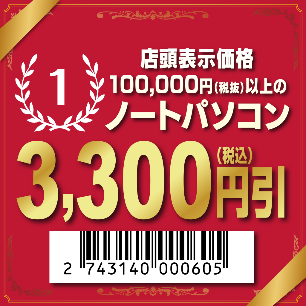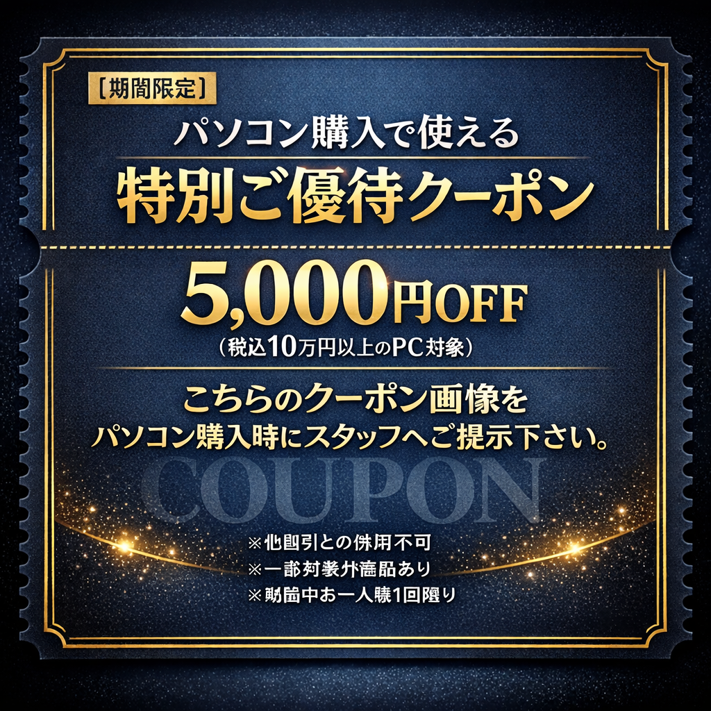 パソコン購入限定クーポン ※こちらのクーポン画像をパソコン購入時にスタッフへご提示下さい。
